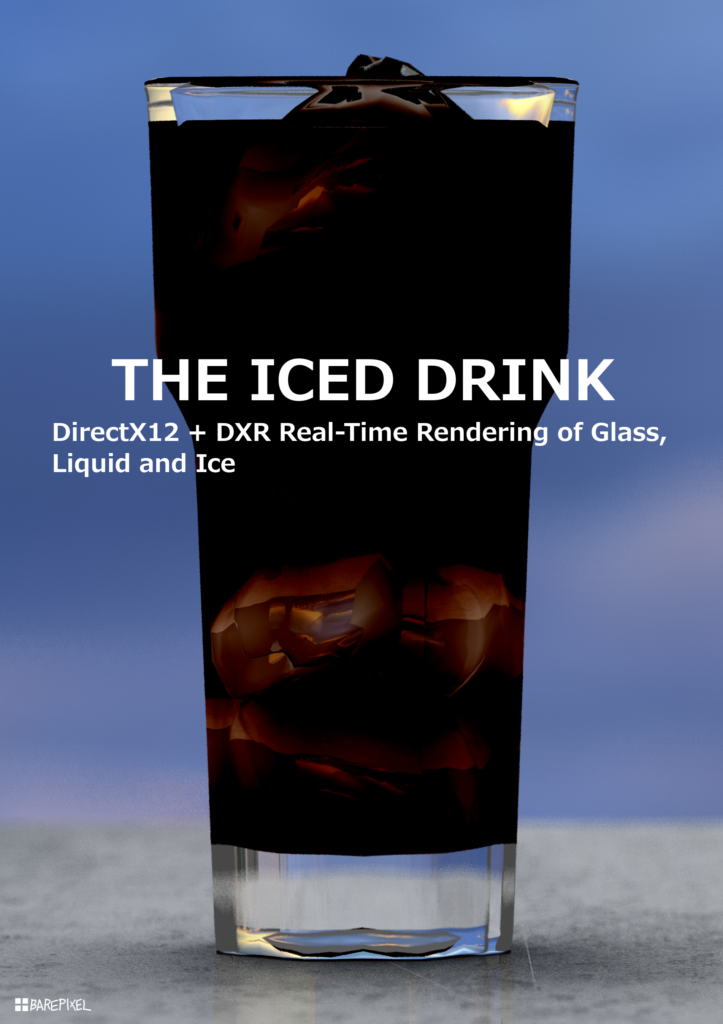 「THE ICED DRINK」は、ガラス・液体・氷といった透明素材の質感表現をテーマにした技術書です。DirectX12 と DXR(DirectX Raytracing)を用いて、リアルタイムに屈折・反射を扱いながら、アイスドリンクのシーンをステップアップ形式で完成まで導きます。